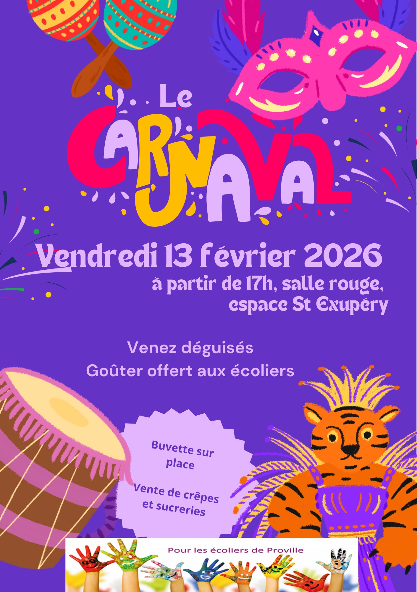 L’association « Pour les écoliers de Proville” vous donne rendez-vous pour son carnaval vendredi 13 février à partir de 17h, salle rouge, espace St-Exupéry.