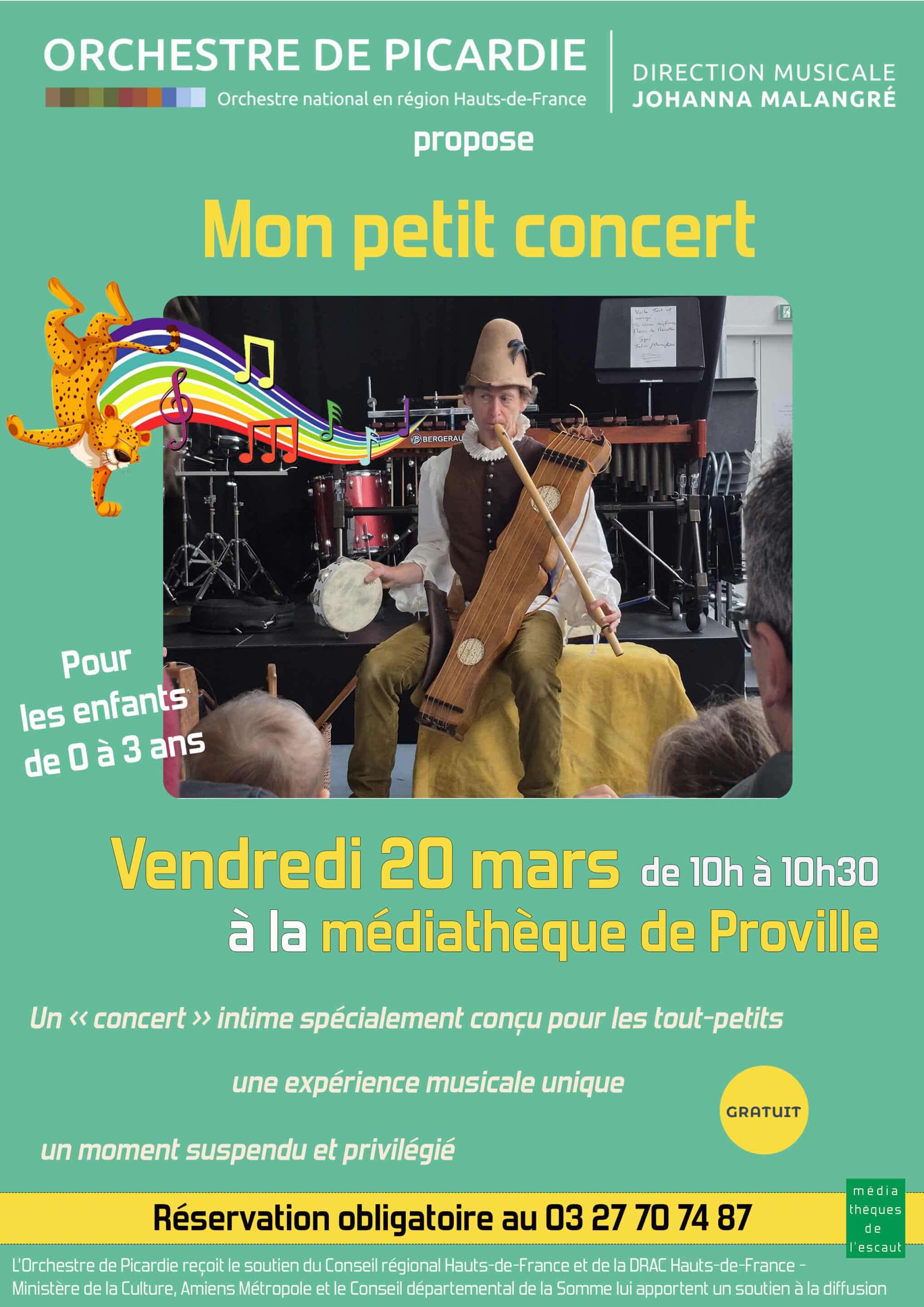 Vendredi 20 mars à 10h00, la médiathèque propose une expérience musicale unique en direction des tout-petits. François MERLET, percussionniste de l’Orchestre de Picardie, vient leur offrir un « concert » intime spécialement conçu pour eux.