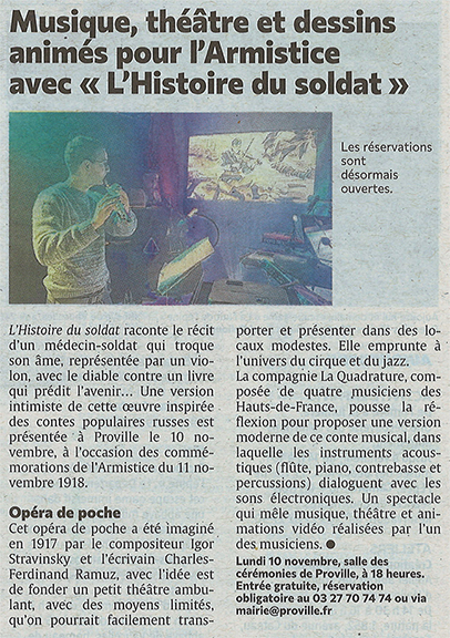 > Musique, théâtre et dessins animés pour l’Armistice avec « L’Histoire du soldat »