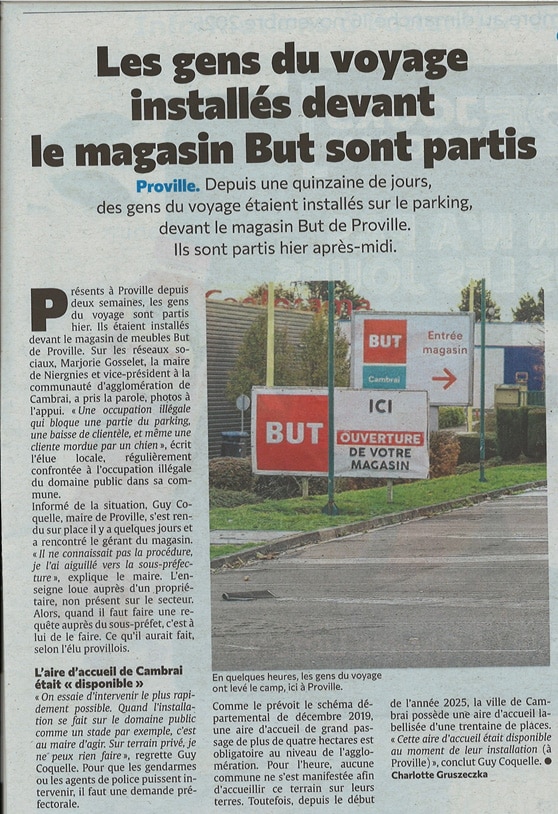 > Les gens du voyage installés devant le magasin But sont partis